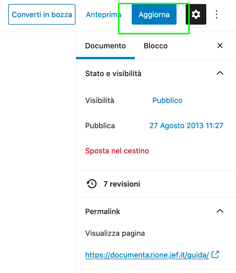 Dopo aver impostato il valore desiderato cliccare su AGGIORNA (bottone blu) in alto a destra per salvare le modifiche.