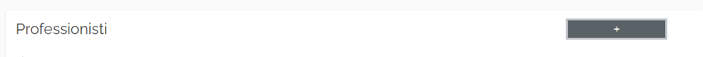 In qualsiasi momento un amministrazione di sistema potrà inserire un nuovo professionista semplicemente cliccando sull’icona grigia raffigurante un più che si trova di fianco al nome professionisti a sinistra.