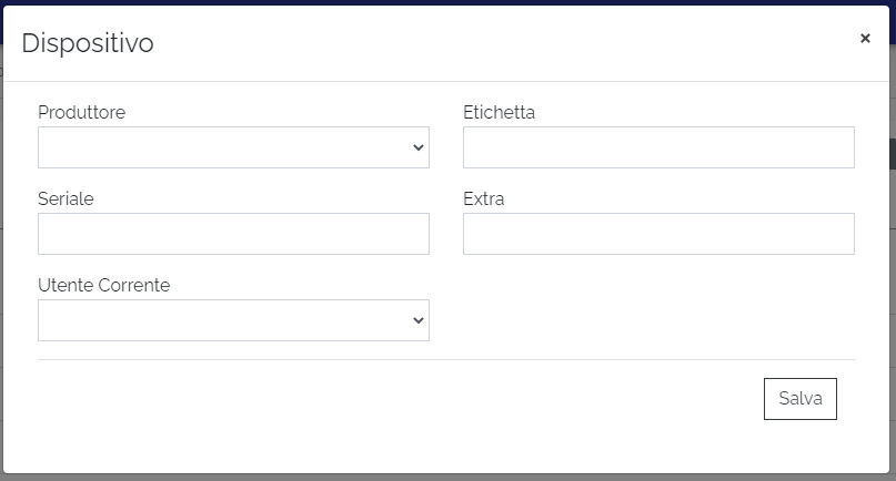 Per inserire un nuovo dispositivo basta cliccare l’icona grigia con il più nell’intestazione della tabella.