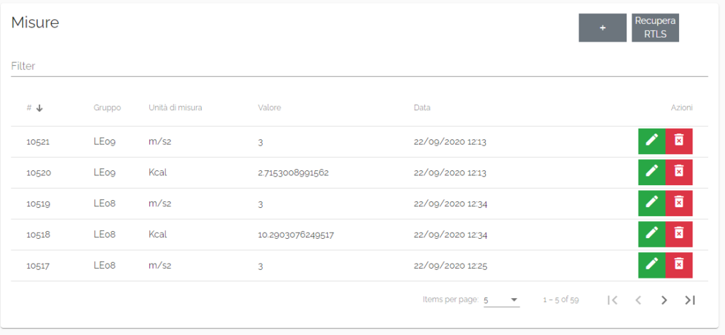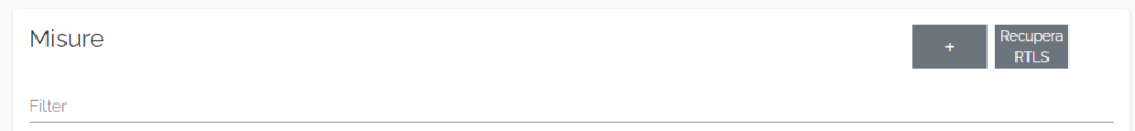 Attraverso l’icona grigia con il più è possibile inserire manualmente una nuova misura mentre cliccando sopra l’icona grigia con indicato Recupera RTLS sarà possibile aggiornare il sistema su una nuova misurazione rilevata dai tags assegnati nelle zone comuni.