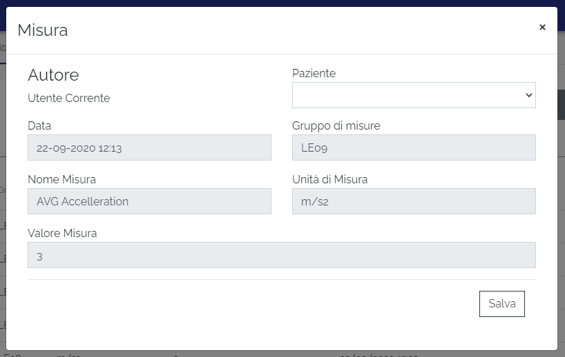 Qualora un dispositivo non fosse correlato a nessun paziente è possibile comunque acquisire la misurazione attraverso questa pagina.