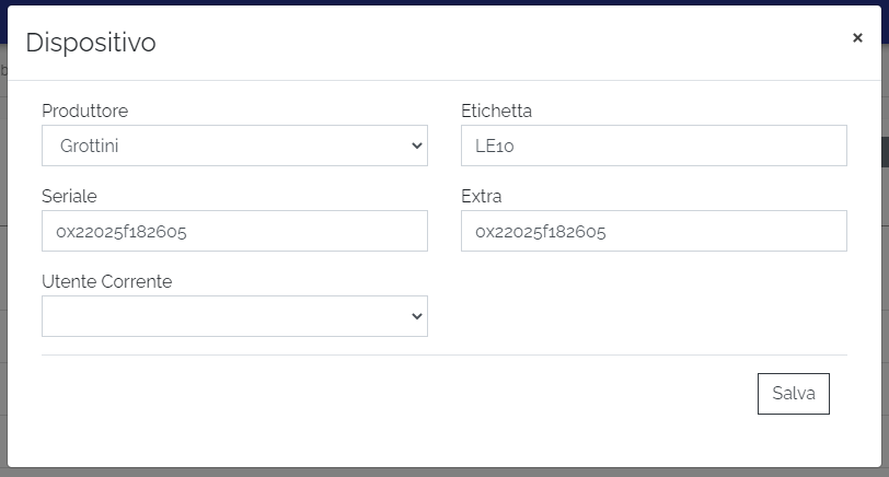 In questo modo si aprirà una schermata identica a quella di nuovo inserimento dispositivo dove sarà possibile modificare tutte le informazioni precedentemente inserite cancellando da tastiera le vecchie e digitando le nuove.