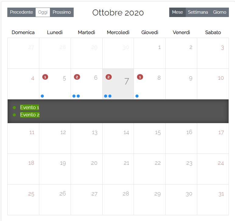 Salvando viene introdotto il nuovo evento che appare nel calendario che si trova nella pagina